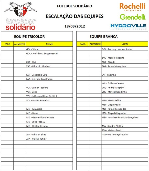Equipes escaladas para o Futebol Solidário do dia 18/03